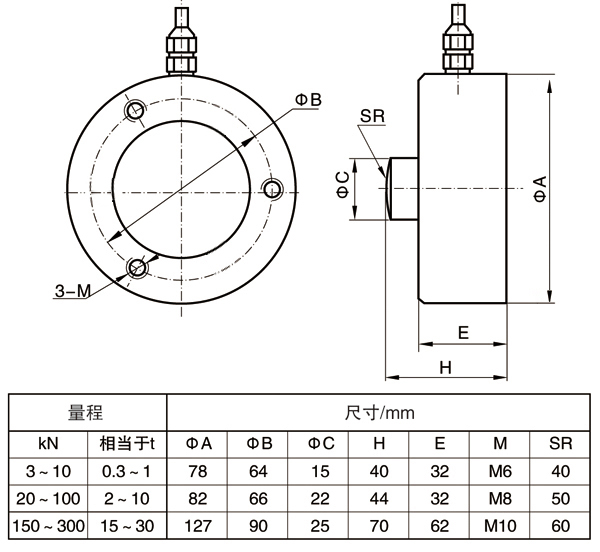 额定载荷: 3,5,10,20,30,50,100,150,200,300(kN)